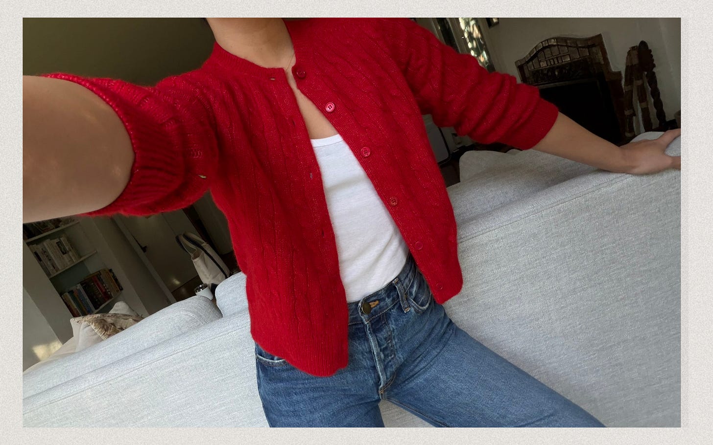A red cashmere cardigan. Lunar New Year is quickly approaching and red is obviously the lucky color to wear. Do I need to do a roundup of some of the best red clothing right now?