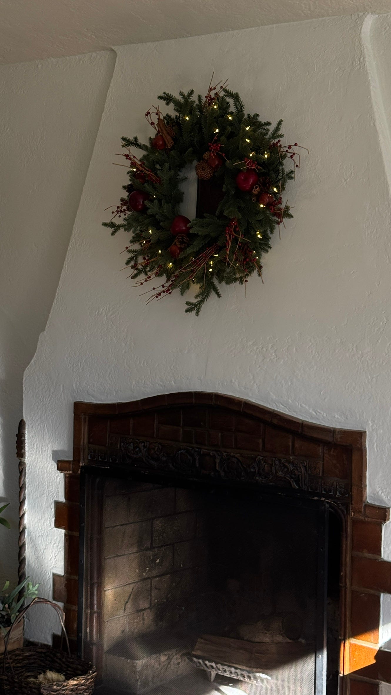 Wreath. I have an old Balsam Hill wreath and garland they don’t make anymore, which is a shame because it’s so damn good. I absolutely love poinsettia wreaths ($150). One day, I’m going to have one in every single window sill.